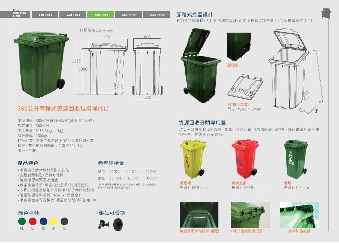 桶身材質:高密度聚乙烯(HDPE)抗紫外線材質